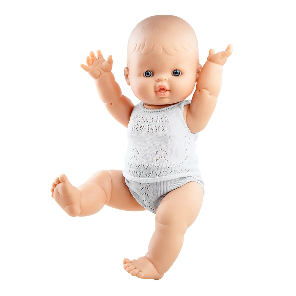 كمية دمية بنت ترتدي بيجامة بيضاء