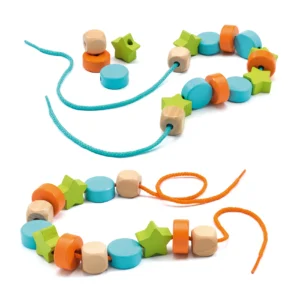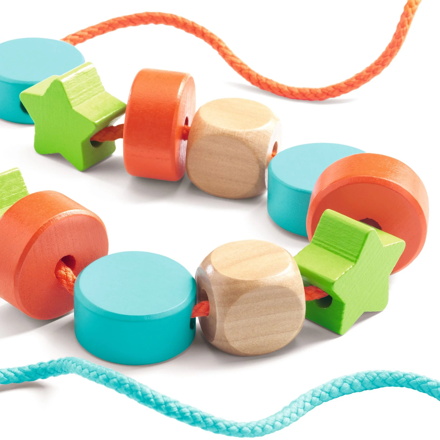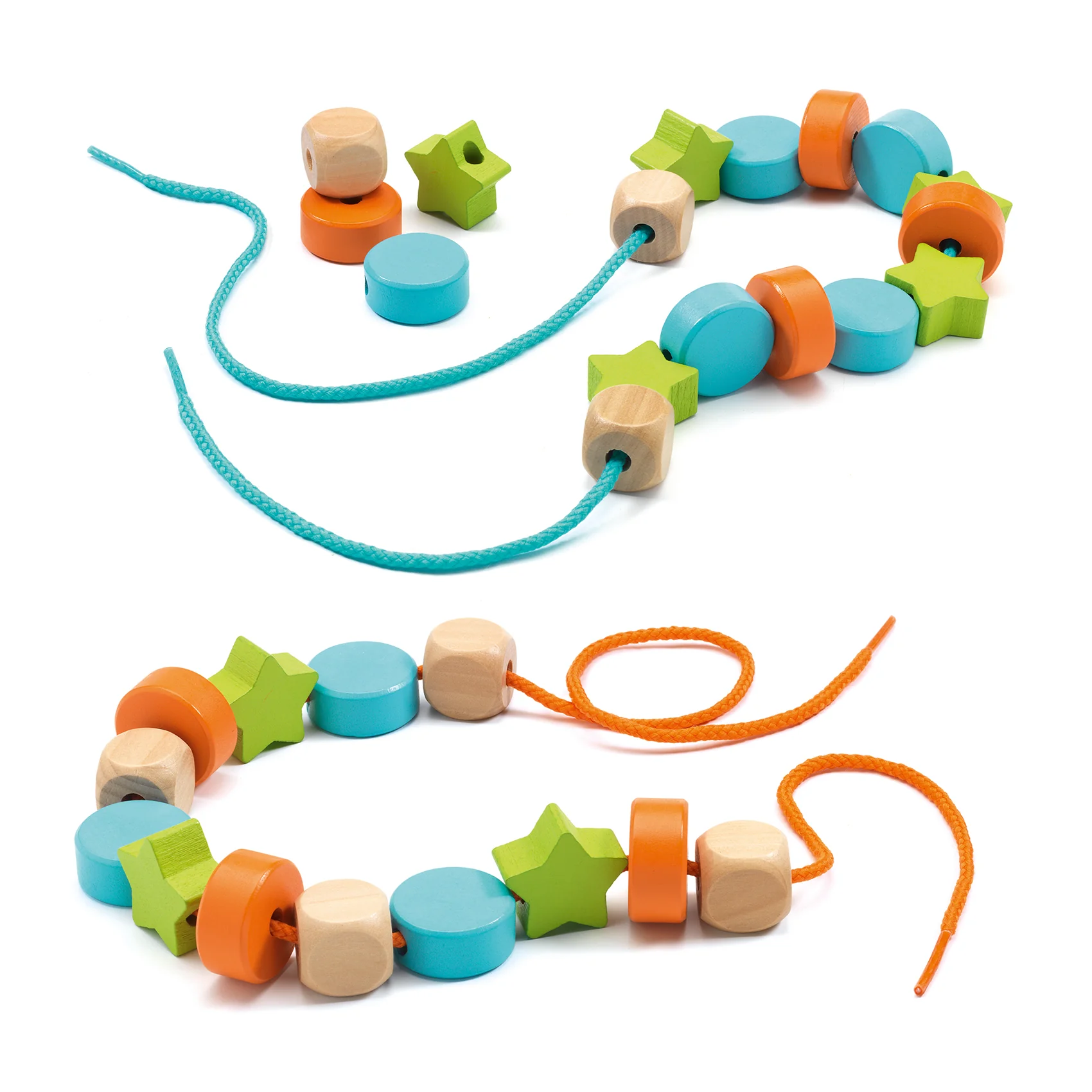 ٢٤ خرزة خشبية مع خيطين لتصميم القلائد مناسبة للأعمار من سنتين فما فوق