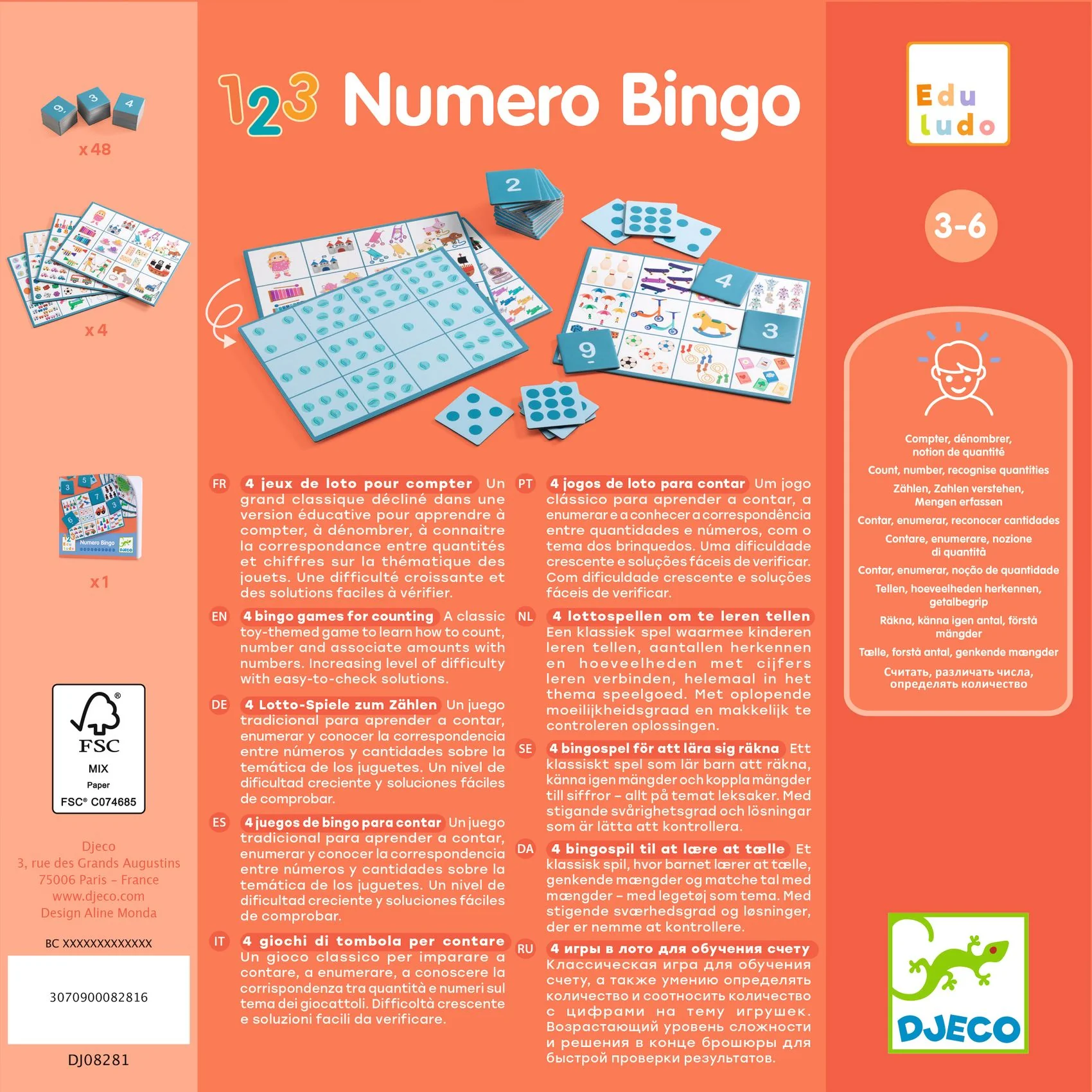 أربع ألعاب بنغو لتعليم العد. لعبة كلاسيكية مصممة لتعليم العد، والتعرف على الأرقام، ومطابقة الكميات مع الأرقام. تتدرج مستويات الصعوبة، مع خيار سهل للتحقق من الإجابات (اختبار ذاتي).