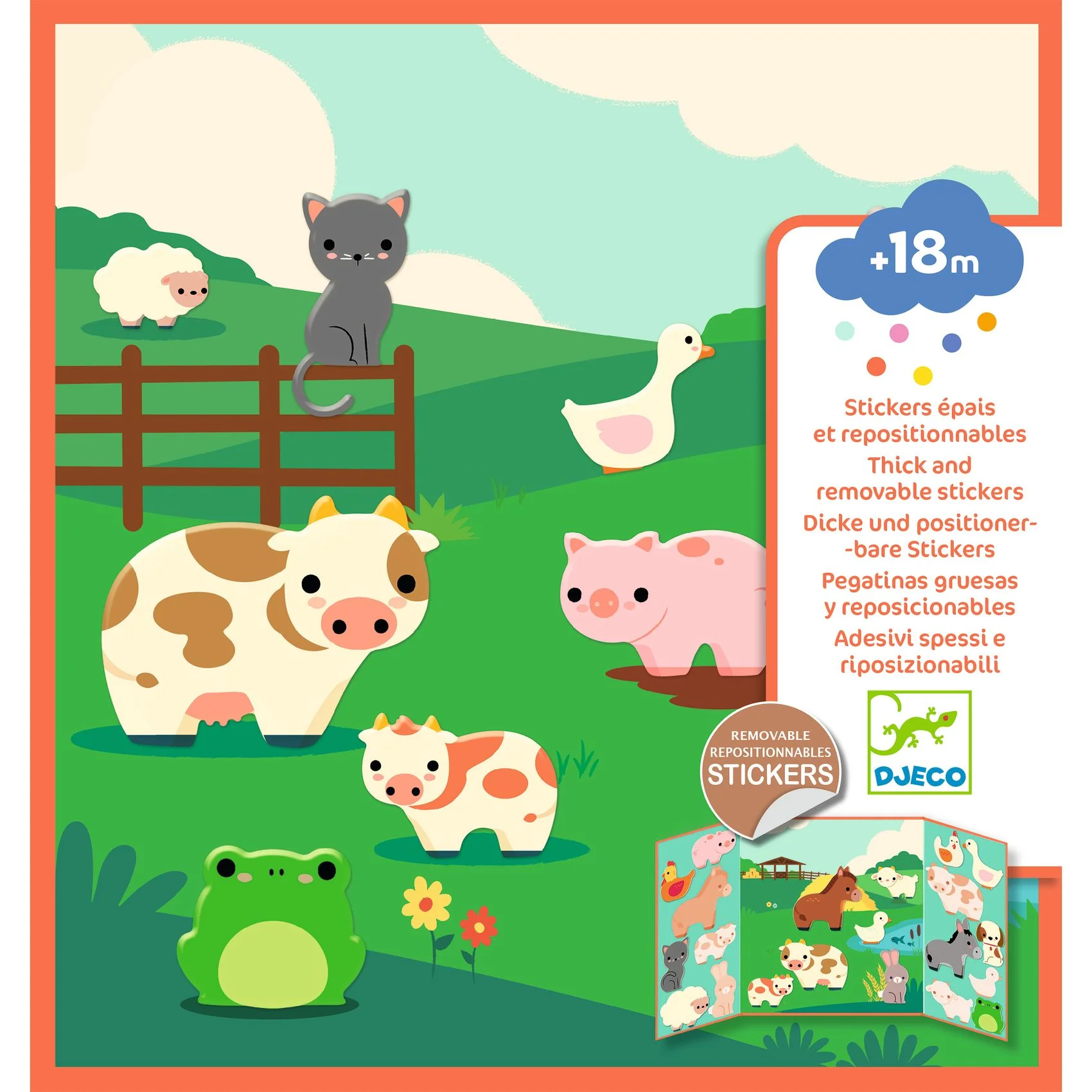 صورة خلفية وملصقات سميكة قابلة لإعادة الاستخدام، لمتعة لا تنتهي... ابتداءً من عمر 18 شهرًا!