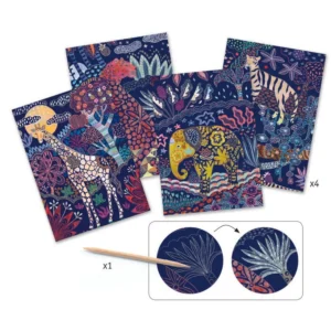 ابتكار آخر من شركة DJECO يُعلّم تقنية الخدش، حيث تقوم بخدش صورة لتكشف تدريجيًا عن لوحة فنية رائعة. مناسب للأعمار من 7 سنوات فما فوق.