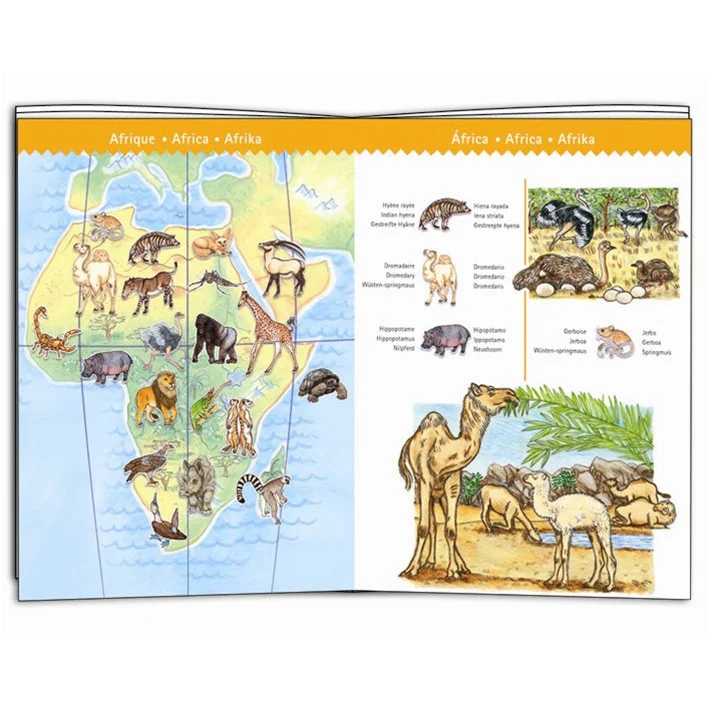تُساعدك هذه الأحجية على تحديد مواقع حيوانات العالم الجغرافية. تأتي الأحجية مع كتيب يشرح أسماء الحيوانات بست لغات مختلفة (باستثناء العبرية). بالإضافة إلى الأحجية والكتيب، يوجد ملصق كبير لصورة الأحجية للمساعدة، ويمكنك أيضًا رسم صورة منها.
